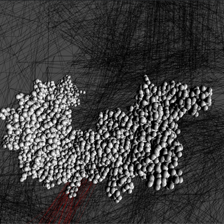 Espacio 3d construido en Max utilizando la estructura de la proteína 2M8L (Capsid p24 HIV)